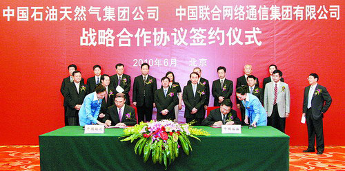 中國聯(lián)通副總經(jīng)理、黨組成員姜正新和中國石油股份公司副總裁劉宏斌,分別代表雙方在協(xié)議書上簽字。中國石油集團(tuán)總經(jīng)理助理李潤生主持簽約儀式。