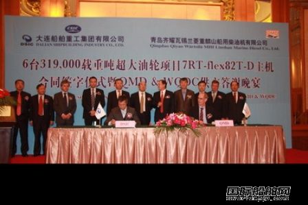 10月25日,青島齊耀瓦錫蘭菱重麟山船用柴油機(jī)有限公司(簡(jiǎn)稱QMD)和大船重工集團(tuán)簽訂六臺(tái)31.9萬(wàn)噸油船主機(jī)合同。中船重工副總經(jīng)理董強(qiáng)、副總會(huì)計(jì)師張英岱,中船重工711所所長(zhǎng)金東寒,瓦錫蘭中國(guó)有限公司總裁朱炯炯,大船重工集團(tuán)總經(jīng)理、黨委書(shū)記劉征,副總經(jīng)理張濤、李程參加了簽字儀式。