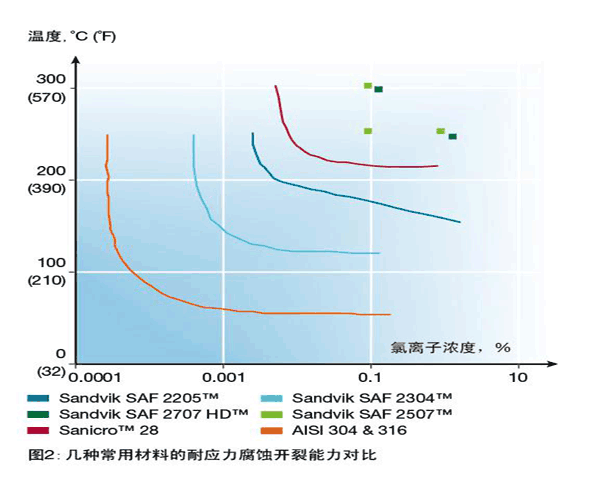 標準不銹鋼 在氯化物腐蝕環境下,雖然局部腐蝕較低,但會導致應力腐蝕開裂。