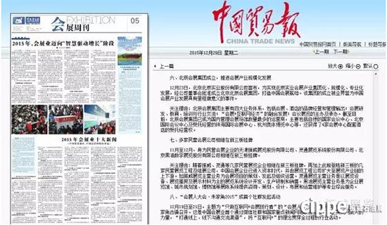 由中國貿易報社、中國經濟網聯袂評選的“2015年會展業十大新聞”中指出,2015年是中國會展業極具里程碑意義的一年。先是國務院公布了《關于進一步促進展覽業改革發展的若干意見》國發〔2015〕15號文,從頂層戰略對展覽業改革發展作出全面部署。