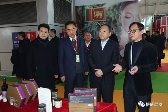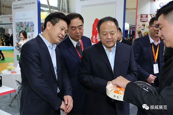哈爾濱貿促會會長王國文、振威展覽董事長張學山陪同哈爾濱市委副書記、市長孫喆參觀2019哈爾濱進口食品博覽會