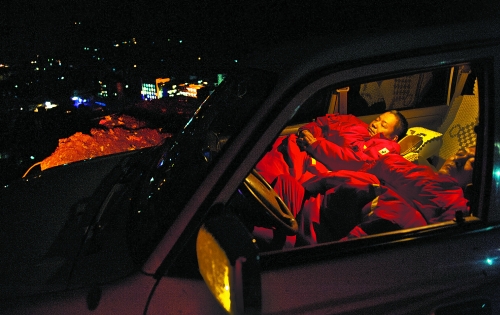 | 因?yàn)闂l件所限,有時(shí)隊(duì)員們只能在車中過夜。 |