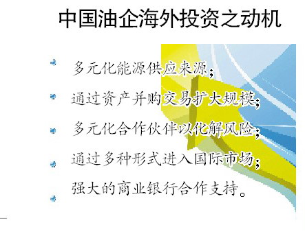 如今,中國石油公司“走出去”往往是與有強大競爭力的國際石油公司合作。而在國際市場上,為了各自利益,國家都處于一種博弈的狀態。