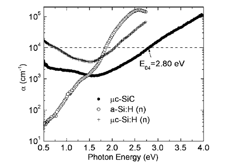 圖6 n型的a-Si、c-Si以及c-SiC:H的吸收系數比較