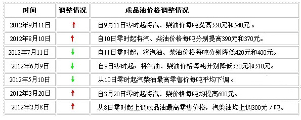 半年來國內成品油價調整情況