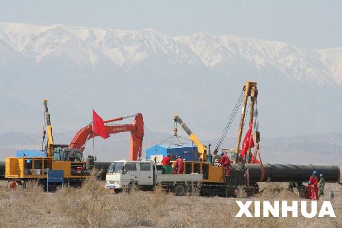 西氣東輸二線工程在天山腳下鋪設(shè) 吊管機(jī)正在將直徑1.2米的天然氣管道緩緩沉入3米多深的管溝中(7月12日攝)。在新疆博樂(lè)境內(nèi)的天山腳下,國(guó)家重點(diǎn)建設(shè)工程西氣東輸二線的建設(shè)者們正頭頂烈日緊張施工。西氣東輸二線工程于2008年2月22日開(kāi)工建設(shè),全長(zhǎng)9139公里,途經(jīng)我國(guó)14個(gè)省區(qū)市。它西起新疆霍爾果斯,東南至廣州、東達(dá)上海,與境外橫跨三國(guó)、同步建設(shè)的中亞天然氣管道相連,年輸氣量300億立方米,穩(wěn)定供氣30年以上,是我國(guó)首次引進(jìn)境外天然氣資源、具有戰(zhàn)略意義的特大型天然氣管道建設(shè)項(xiàng)目。 新華社記者 沈橋 攝