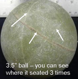 This engineered composite ball was recovered from a well in Canada. The lines engraved in the ball show that it seated firmly and remained intact.