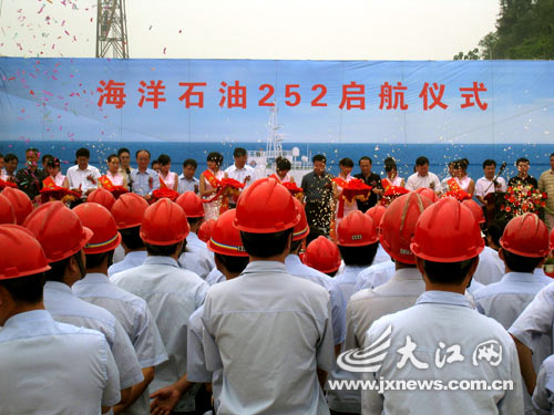 中新網南昌6月1日電王劍 陳慶華6月1日,我國首次建造海上油田首制探油環保船海洋石油252同方江新6號啟航慶典儀式在江西九江湖口金砂灣工業園區內的同方江新造船公司舉行。