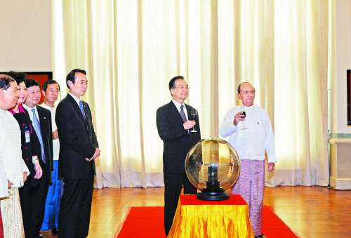 國務院總理溫家寶、緬甸總理登盛出席簽字暨開工儀式