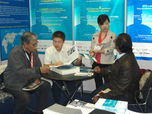 北京振威展覽有限公司在GPS的展位展示了上海石油石化展,海洋石油展,北京石油展,石油與裝備雜志和振威石油網(wǎng),均收到參展過的企業(yè)好評外,還有不少企業(yè)對參加上海 cippe2010 石油石化展會表示濃厚感興趣,圖為一家中東集團(tuán)采購部門經(jīng)理詳細(xì)了解上海 cippe2010 石油石化展會。