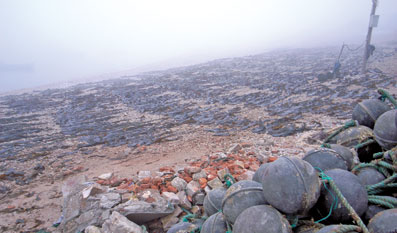 7月9日,大欽島附近海域一片霧氣。時值海帶收獲季節(jié),大欽島無論碼頭、沙灘還是路邊,目之所及俱是漁民們收曬海帶的忙碌身影。小濠村漁民唐道恒既種海帶又養(yǎng)扇貝,六七月,他家的扇貝出現(xiàn)了死亡現(xiàn)象。唐道恒的妻子說,她想帶頭起訴中海油和康菲石油公司,但又無法提供證據(jù)。