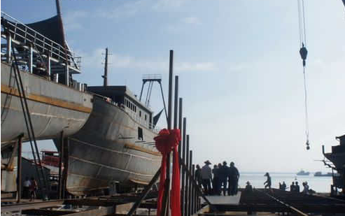 南漁集團為此舉行了簡短而熱烈的開工儀式,長60米、寬15米的巨大平臺正在搭建,12位技術人員在緊張施工。迎著飄揚的大紅彩帶,海南石油分公司海域中心田恒榮經理同現代修造船公司周二仁總經理的手緊緊地握在了一起。田經理高興地說:“打造石化海上‘航母’是一項關乎長遠的生命工程,具有劃時代的意義,一定要保質保量,加快進度,圓滿完工。”周總堅定地說:“請貴公司放心,我們高度重視1500噸油躉船建造工作,已成立造船指揮部和各級領導小組,對工程質量和實施進度層層把關,一定提前圓滿完成任務!”