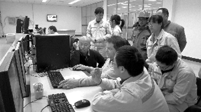 圖為DCS控制人員正在根據(jù)分析儀反饋的數(shù)據(jù)調(diào)整聚合反應(yīng)。