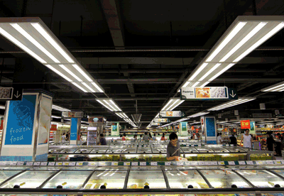 對常規的超市照明來說,原先使用的照明系統能量消耗較大且需要經常維修,新的照明系統的主要考量在于:保持原有照明標準的同時,還能節約能源約8%。 GE照明在多家華潤超市的內部安裝了2*28W的T5 Watt-Miser系統,這種融優雅纖巧與低能耗于一體的熒光燈,使用壽命長達 25,000小時,大大降低了用戶的維護費用和替換費用。光效高達111流明每瓦,在維持原有照度要求的基礎上,該系統節約能耗8%。