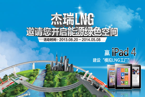 據了解,該款游戲以近年來日益嚴重的環境問題為契機,讓世人審視自身行為對環境的影響,通過參與者構建LNG能源王國,打造一個清潔環保的綠色世界。該活動將在2014年5月8日NGV展會期間結束,屆時杰瑞集團在展會現場為最終獲獎者頒發IPAD4大獎,以回饋行業長期以來對其的關注。