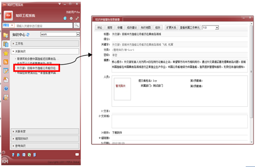 另一類是基于對企業業務梳理基礎上進行的特定業務活動相關領域知識推送。其中涉及業務流程的梳理和業務活動的建模、業務與知識的關聯以及流程驅動的知識推送等關鍵技術。
