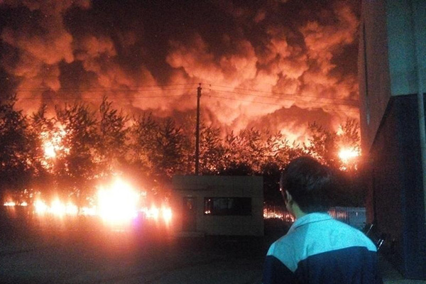 央視記者于23時30分的現(xiàn)場連線稱,現(xiàn)場有大火從疑似地下下水道的管口向外噴出,在地面也能感受到明顯的熱度,空氣中彌漫著非常濃的很刺鼻的原油味道,火場周圍的幾個下水道管口都在往外冒濃煙,火勢仍然兇猛,已有50多輛消防車趕到增援;饒鲋饕谴紊馂(zāi)的現(xiàn)場,在原油泄漏點六公里外的區(qū)域發(fā)生了火災(zāi)。