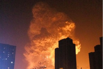 昨晚11時30分左右,天津濱海新區一集裝箱碼頭發生爆炸。據現場目擊者稱,現場火光沖天,騰起蘑菇云,爆炸產生強烈震感,河北多地亦能感覺到。據央視報道,發生爆炸的是集裝箱內的易燃易爆物品。目前受傷人員被送往附近醫院急救,具體傷亡情況尚不清楚。
