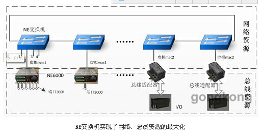 NE交換機(jī)支持多種總線協(xié)議及I/O接口,實(shí)現(xiàn)總線數(shù)據(jù)的網(wǎng)絡(luò)化。代替非傳統(tǒng)的點(diǎn)對(duì)點(diǎn)模式,使網(wǎng)絡(luò)和總線的資源利用率最大化。進(jìn)而實(shí)現(xiàn)靈活的網(wǎng)絡(luò)配置,可直接連接儀表、工業(yè)相機(jī)等現(xiàn)場(chǎng)設(shè)備,讓PLC能夠連接到距離更遠(yuǎn)的I/O設(shè)備,大大減少整個(gè)系統(tǒng)內(nèi)PLC的數(shù)量,顯著的降低了系統(tǒng)集成的成本。此外NE交換機(jī)還可通過Web和SNMP OPC Server集成到網(wǎng)絡(luò)監(jiān)控軟件實(shí)時(shí)監(jiān)控節(jié)點(diǎn)狀態(tài),并設(shè)有故障警報(bào)功能,方便遠(yuǎn)程維護(hù)和管理。