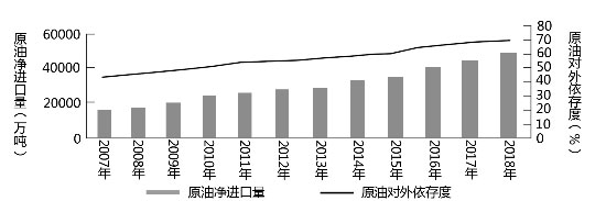 中國原油進(jìn)口量及對外依存度變化(來源:2018年國內(nèi)外油氣行業(yè)發(fā)展報(bào)告)
