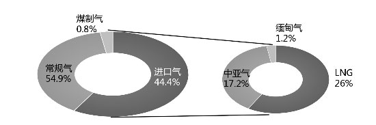 2018年中國天然氣供應(yīng)結(jié)構(gòu)(來源:2018年國內(nèi)外油氣行業(yè)發(fā)展報(bào)告)